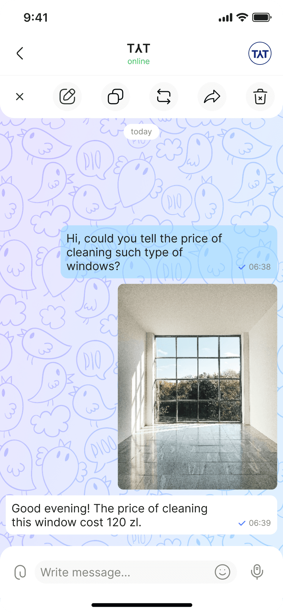 Get post-cleaning photos or ask questions through our messenger